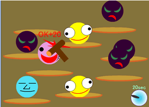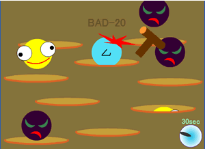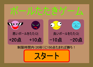 悪いボールをたたくと、点数が加算され、良いボールをたたくと点数が減ってしまいます。